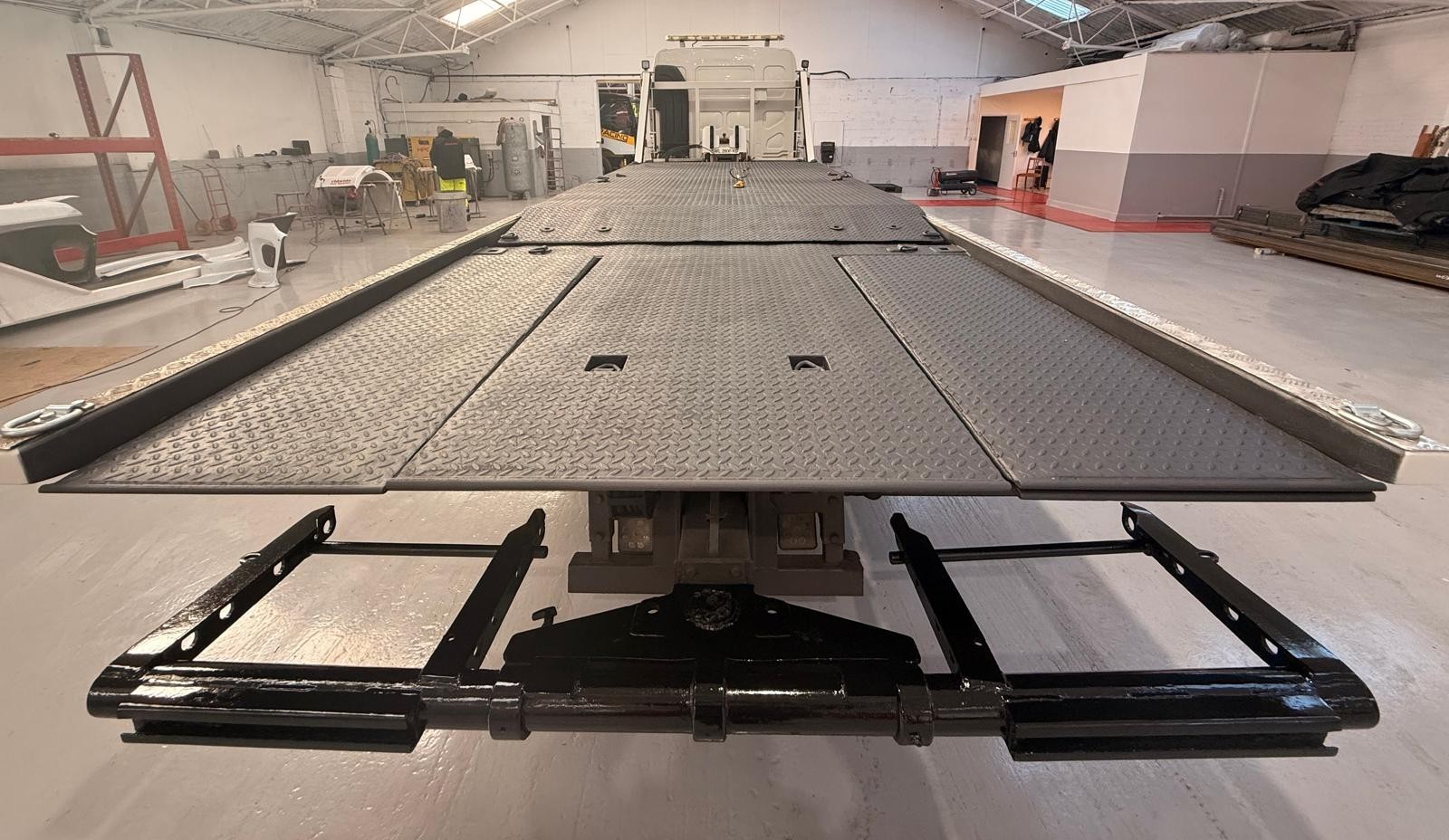 Fitted with Roger Dyson Hydraloader 4500 with layflat top deck and independent 2nd car lift, power out ramps for improved loading angle, 8000lb hydraulic winch (manually sliding), chassis mounted tool lockers, LED light-bar, LED work-lights, LED strobes, Kelsa bar and spot-lights, Alcoa alloy wheels etc. MOT to 31/03/26